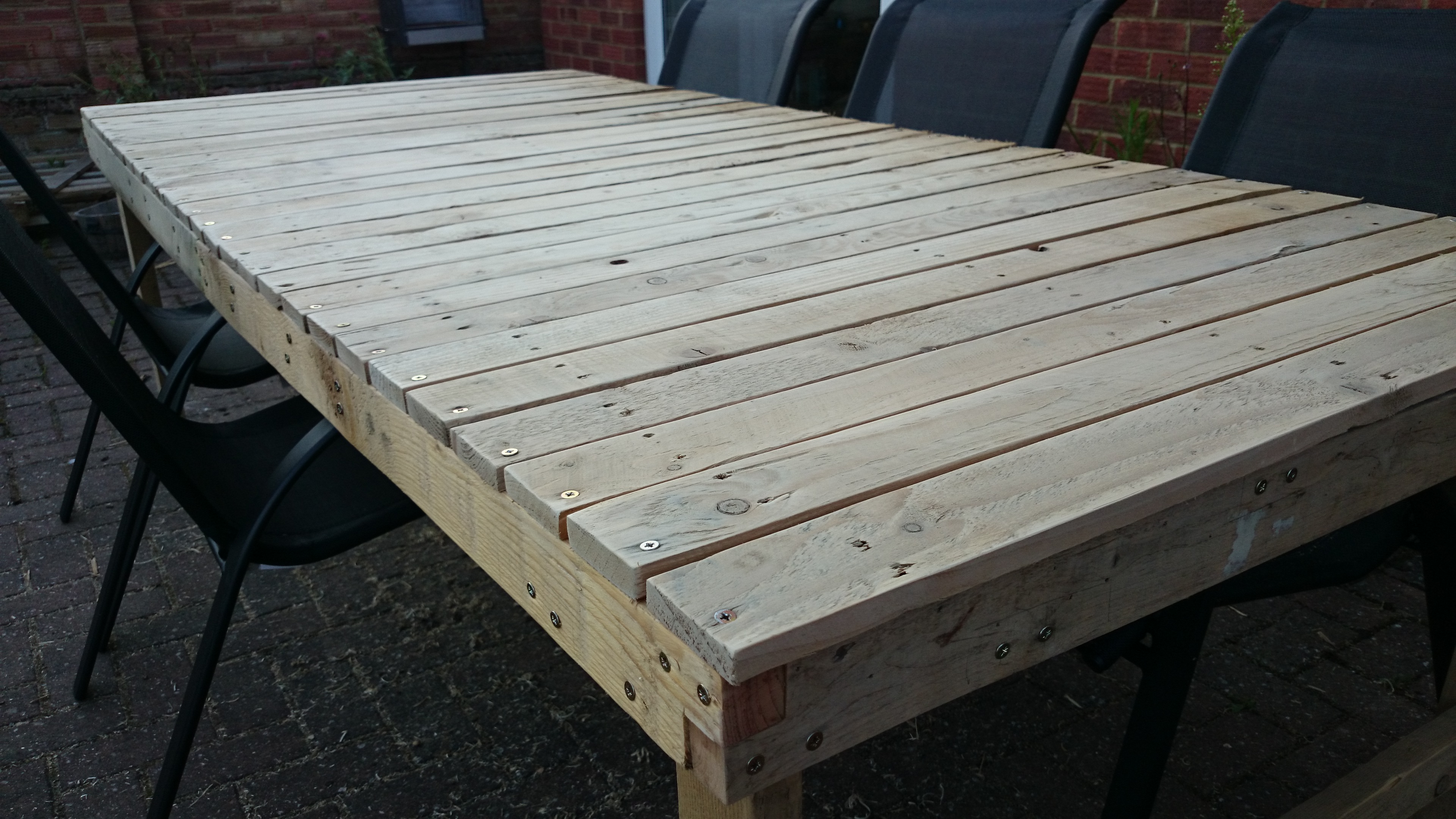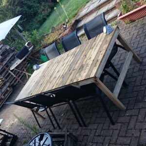 I acquired a small stack of wooden pallets from a construction site and after deciding that using them as firewood was a bit of a waste, I thought it would be nice to make a garden table out of the good parts from them. There are plenty of example pallet table ideas out there on the interweb but this one is different as it's "my" pallet table!