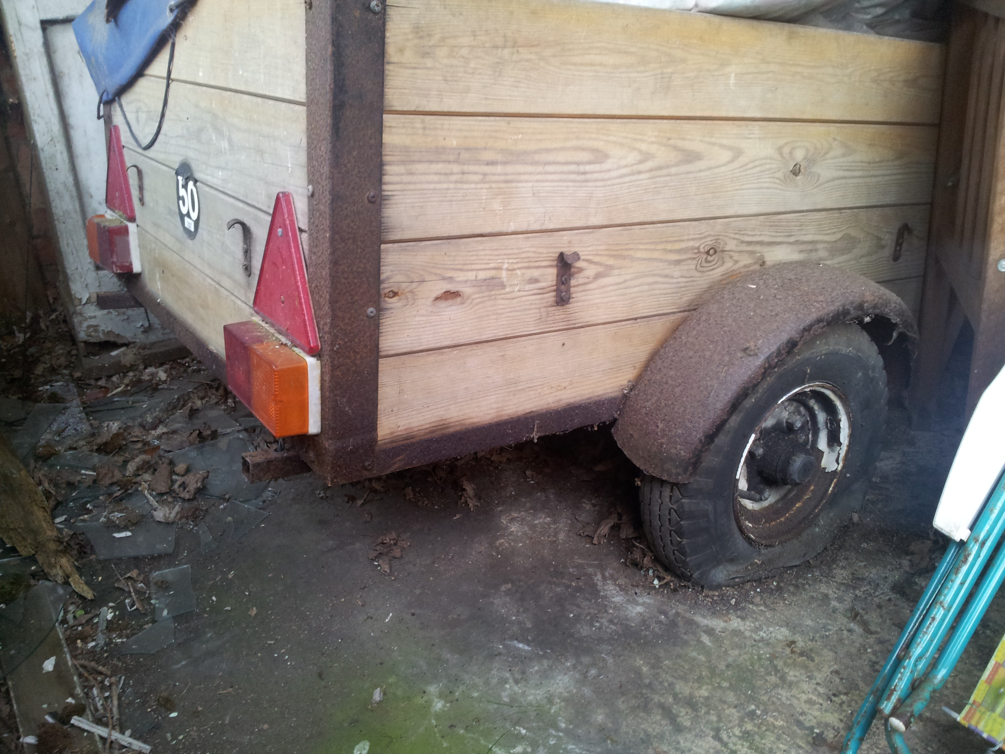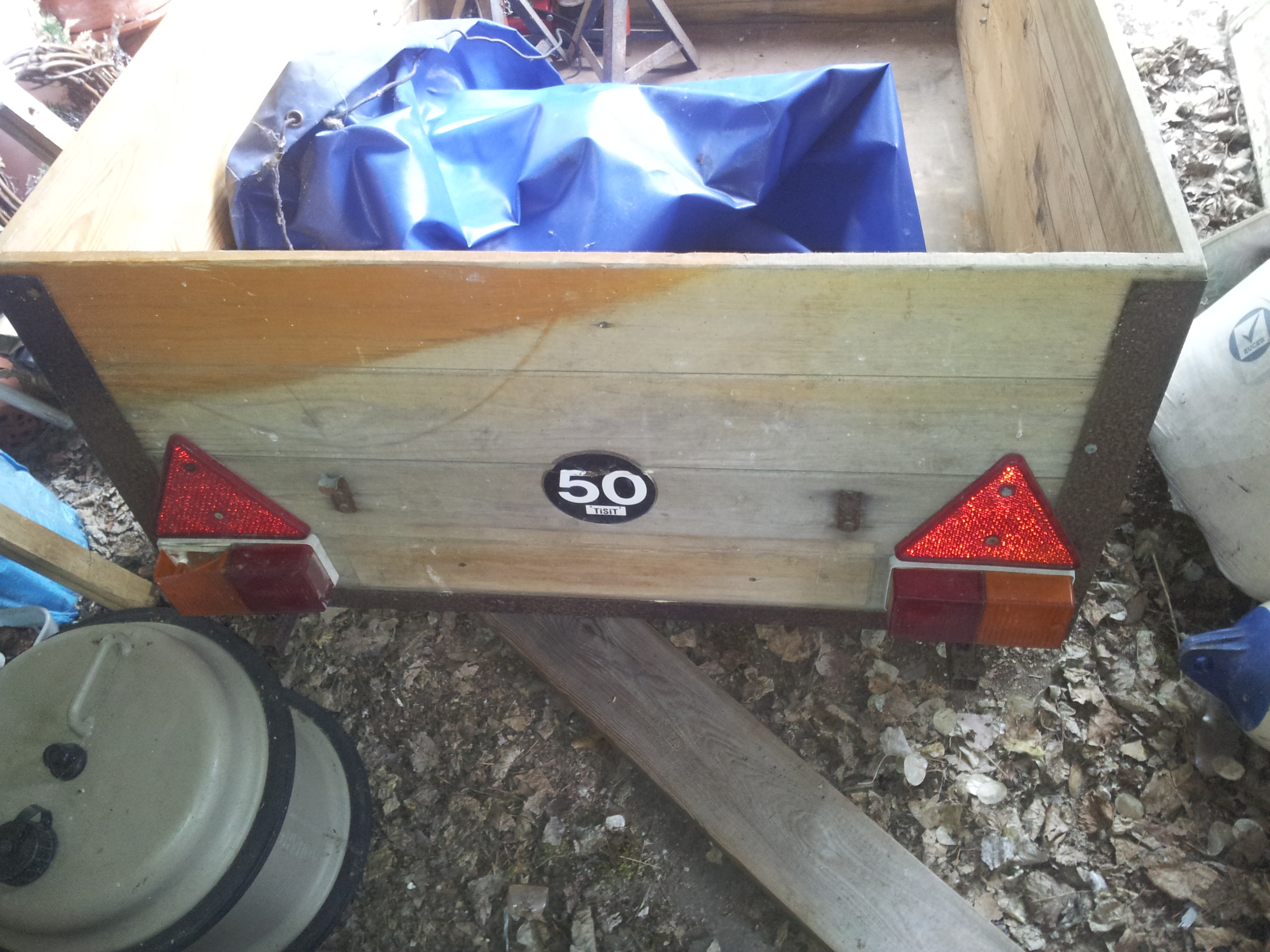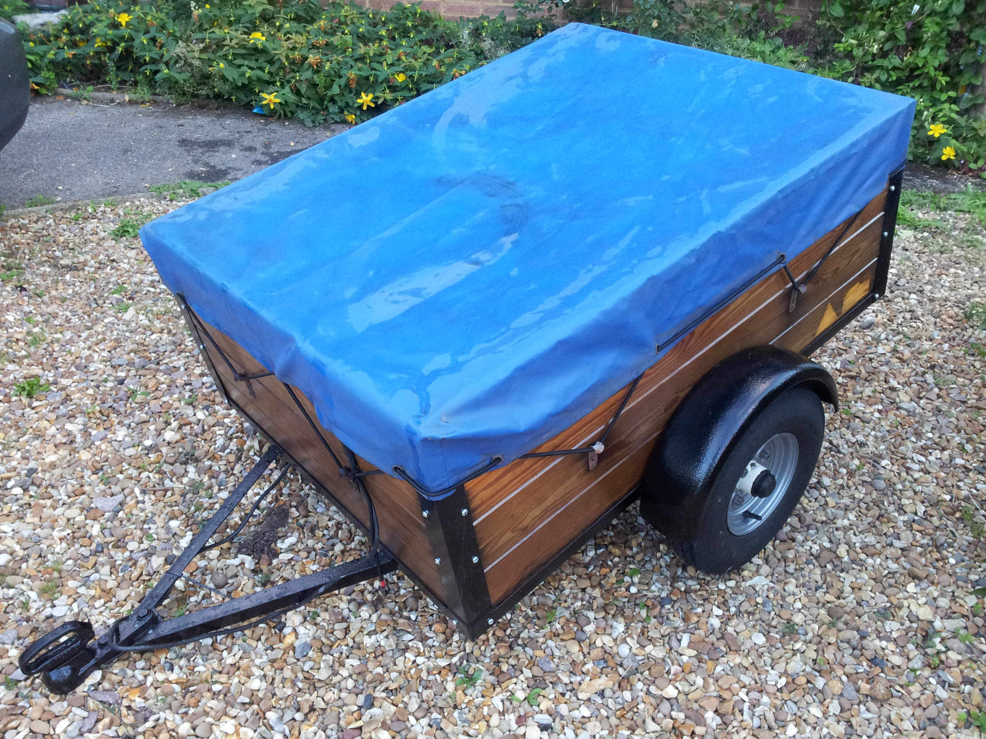 The tarpaulin is actually the original. The elastic strap was shot and so was I replaced it with the help of Ebay :) As it was originally a trailer tent, the base wasn't strong enough for random loads. After thing and rethinking possible welding of new struts, I realised a much simpler solution was to use a thick sheet of marine ply I had lying around (again thanks to houses previous owner). Cut to width and length and laid over the original floor, this additional sheet effectively spreads the load. All in, I probably spent in the area of £50-£60 and now have a fully working trailer. Not bad hey!